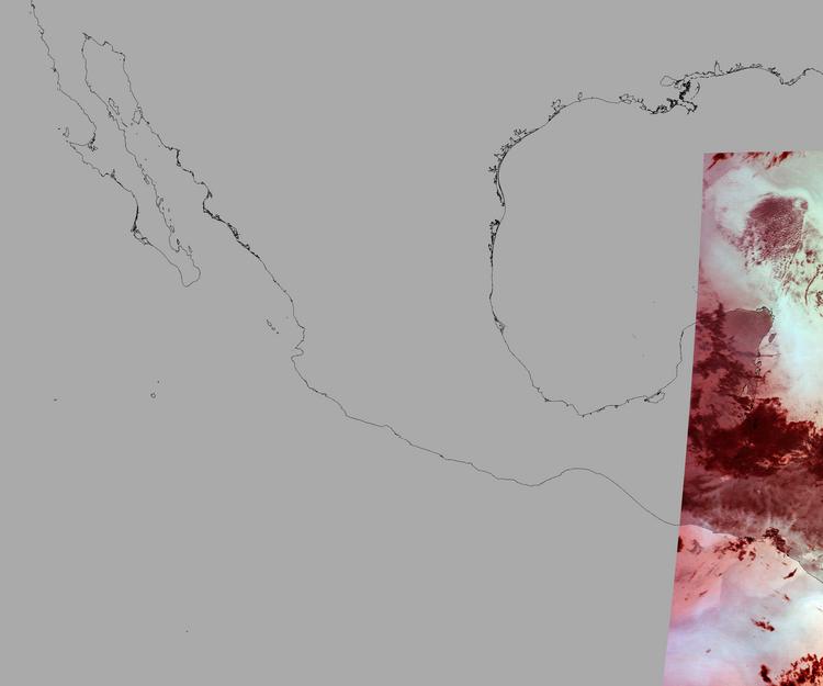 Nubosidad sobre el terreno:0% Nubosidad sobre México:0% Datos nulos en la escena:87% Datos nulos sobre México:94% |