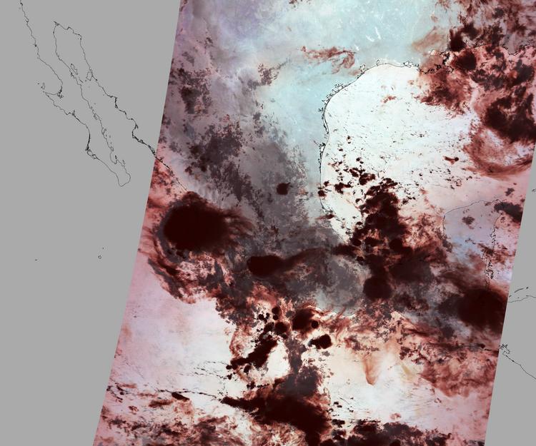 Nubosidad sobre el terreno:20% Nubosidad sobre México:25% Datos nulos en la escena:29% Datos nulos sobre México:21% |