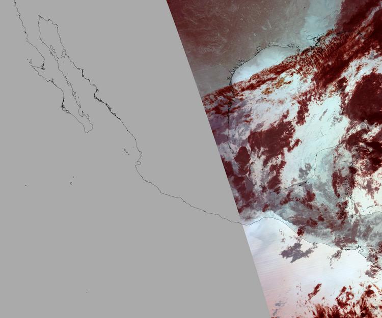 Nubosidad sobre el terreno:4% Nubosidad sobre México:2% Datos nulos en la escena:57% Datos nulos sobre México:73% |