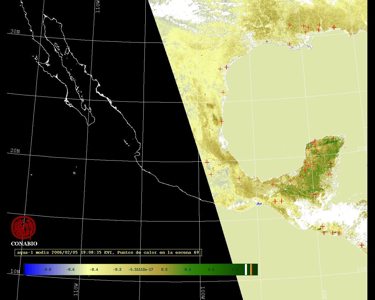 Se considera como punto de calor al elemento espacial mínimo de la imagen (pixel) que reporta una temperatura elevada. Para las imágenes diurnas la temperatura mínima considera es de 42 C y para las imágenes nocturnas es de 25 C. |