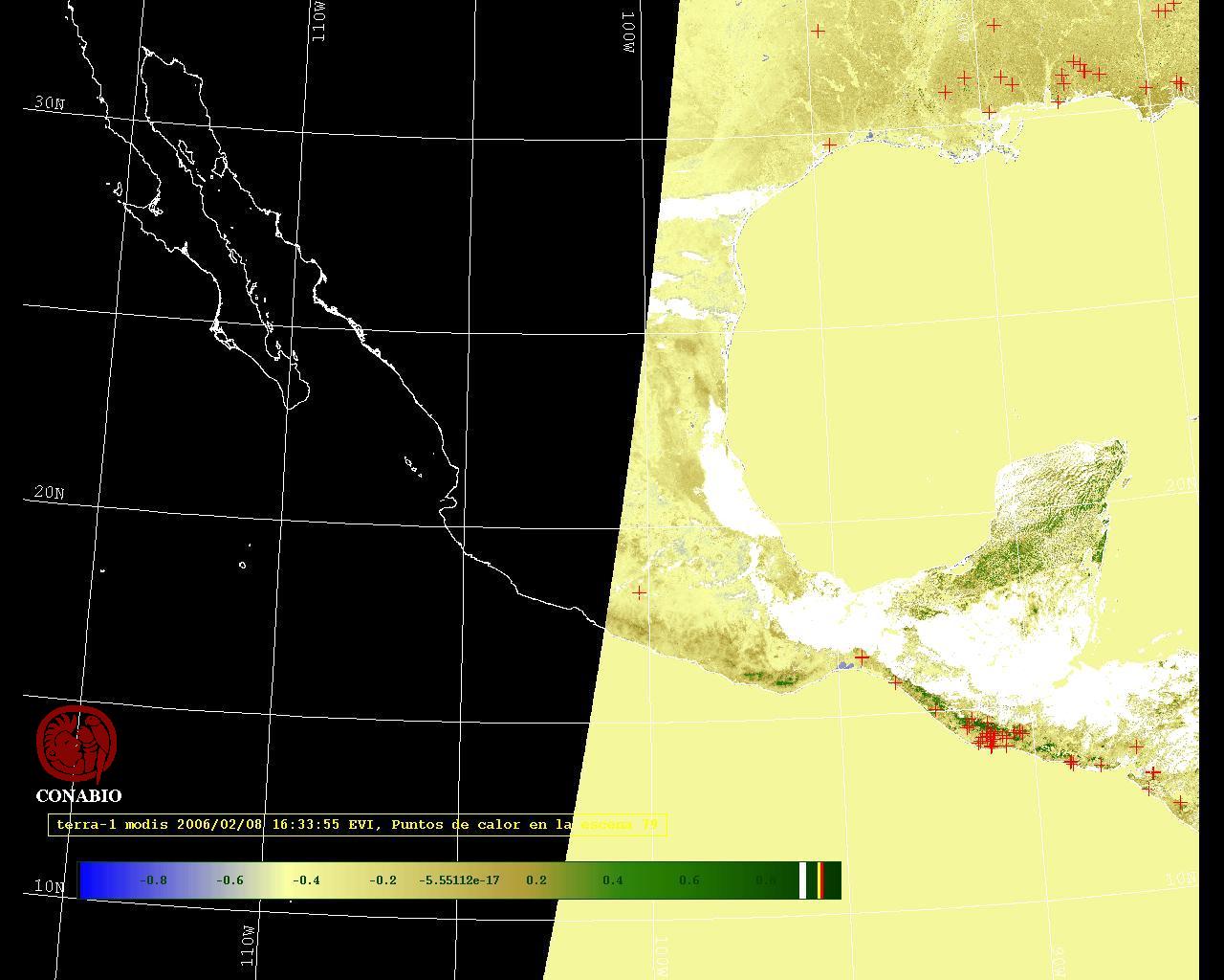Se considera como punto de calor al elemento espacial mínimo de la imagen (pixel) que reporta una temperatura elevada. Para las imágenes diurnas la temperatura mínima considera es de 42 C y para las imágenes nocturnas es de 25 C. |