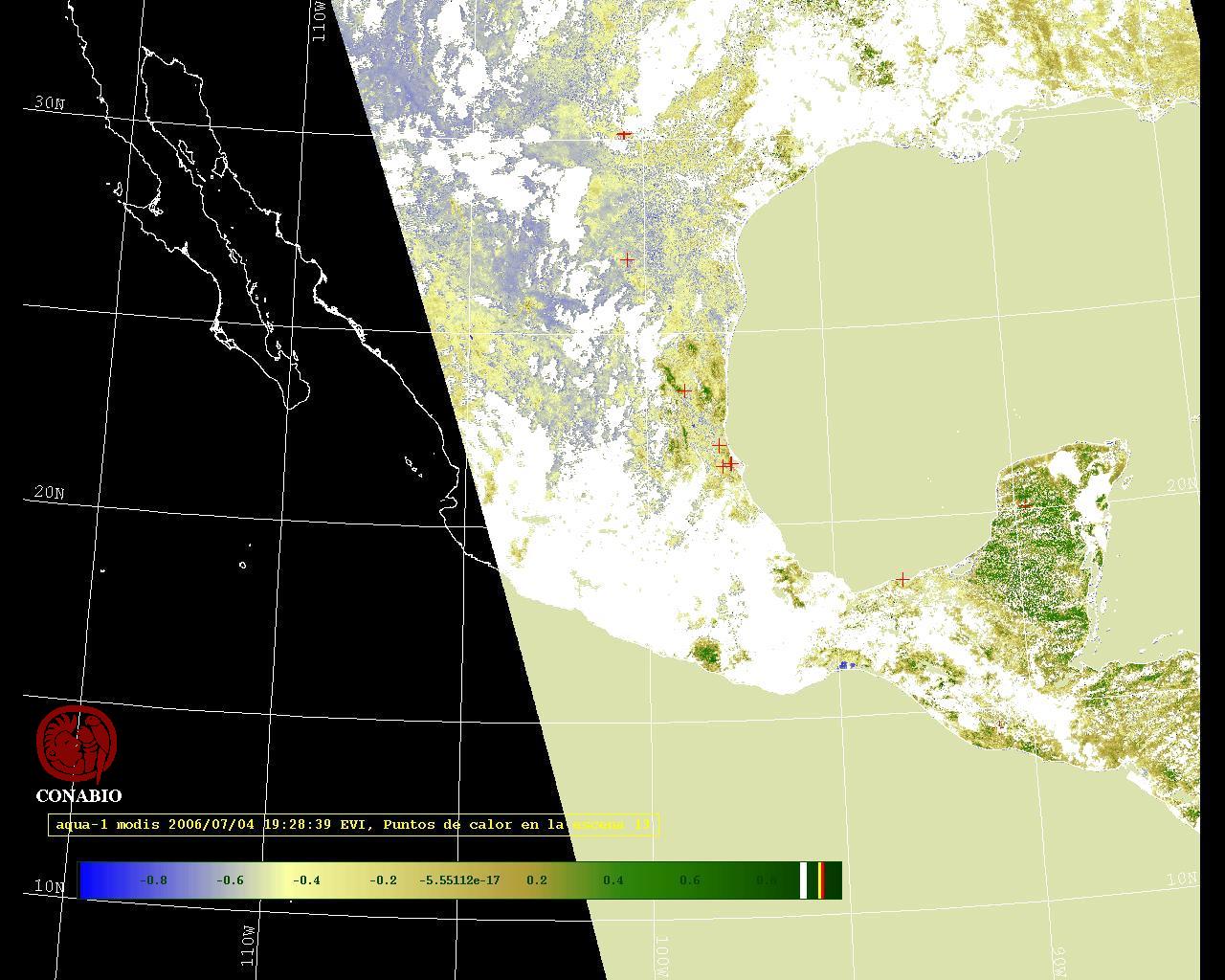 Se considera como punto de calor al elemento espacial mínimo de la imagen (pixel) que reporta una temperatura elevada. Para las imágenes diurnas la temperatura mínima considera es de 42 C y para las imágenes nocturnas es de 25 C. |