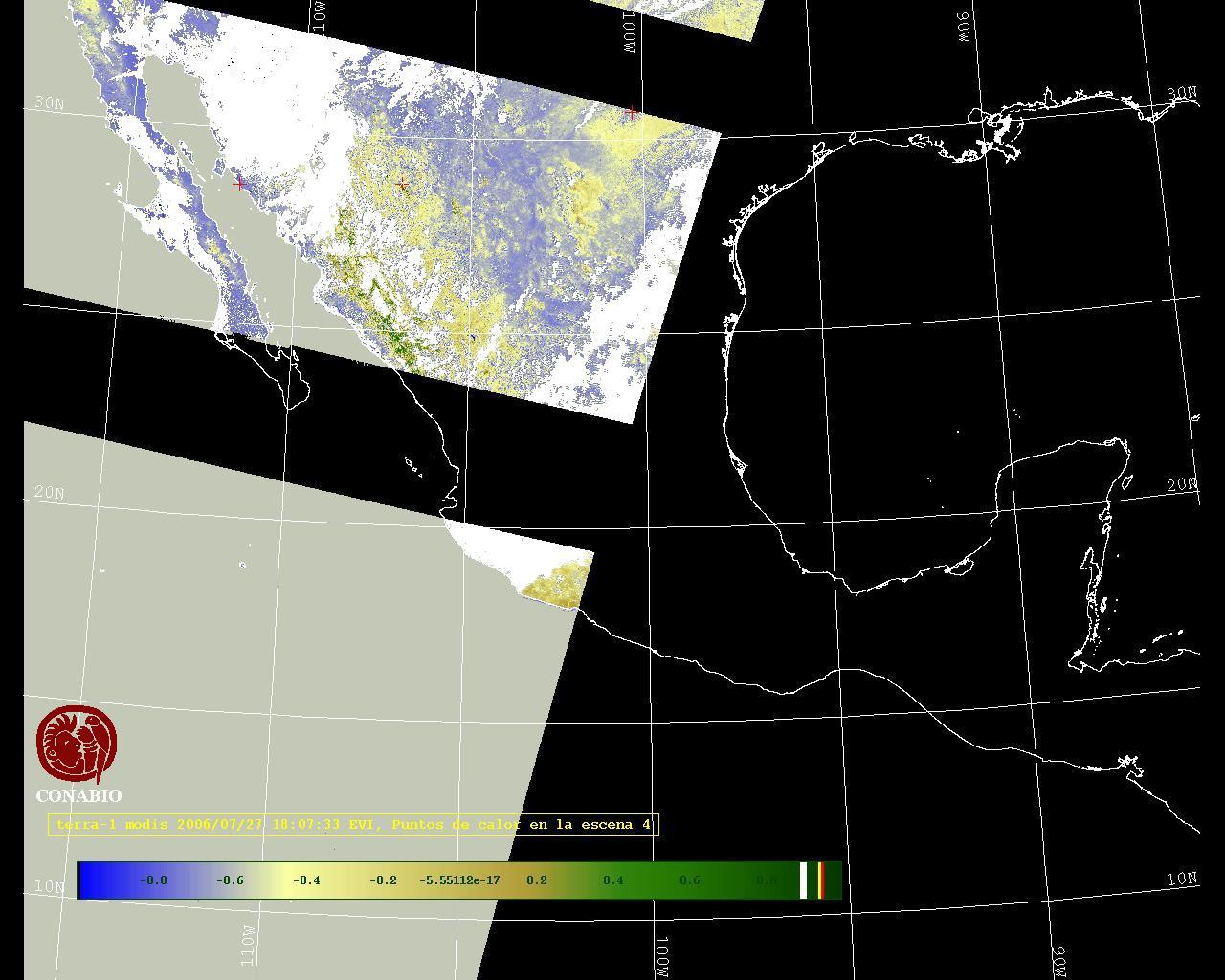 Se considera como punto de calor al elemento espacial mínimo de la imagen (pixel) que reporta una temperatura elevada. Para las imágenes diurnas la temperatura mínima considera es de 42 C y para las imágenes nocturnas es de 25 C. |