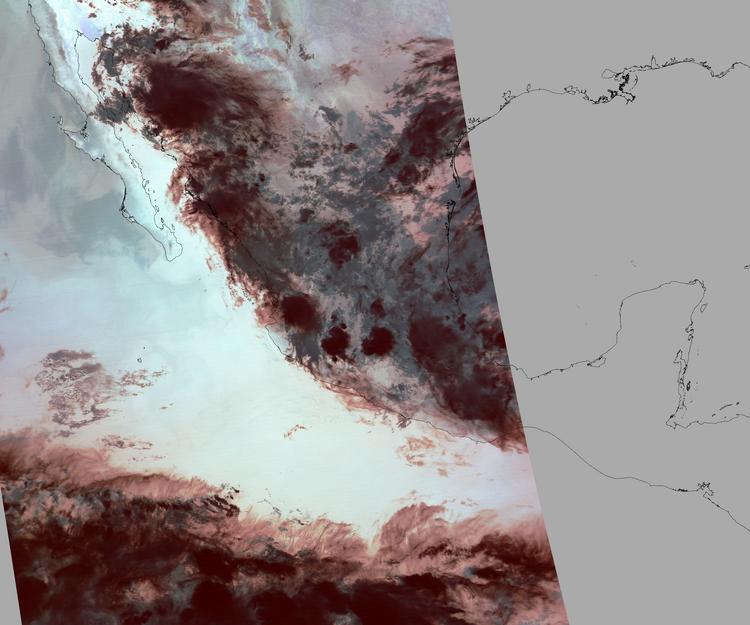 Nubosidad en el terreno:44% Nubosidad sobre México:53% Datos nulos en la escena:33% Datos nulos sobre México:13% |