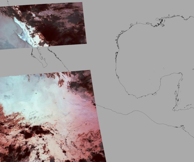 Nubosidad sobre el terreno:41% Nubosidad sobre México:41% Datos nulos en la escena:52% Datos nulos sobre México:48% |