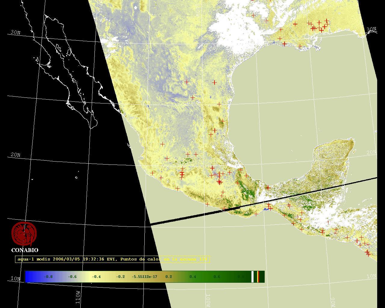 Se considera como punto de calor al elemento espacial mínimo de la imagen (pixel) que reporta una temperatura elevada. Para las imágenes diurnas la temperatura mínima considera es de 42 C y para las imágenes nocturnas es de 25 C. |