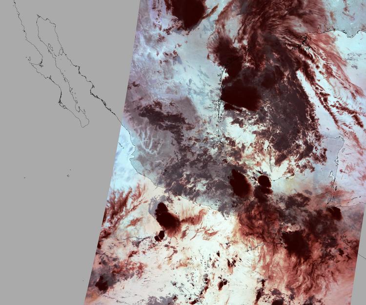 Nubosidad en el terreno:9% Nubosidad sobre México:14% Datos nulos en la escena:32% Datos nulos sobre México:28% |