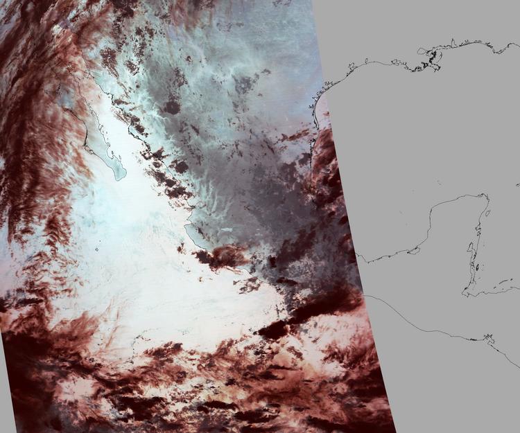 Nubosidad sobre el terreno:9% Nubosidad sobre México:10% Datos nulos en la escena:33% Datos nulos sobre México:13% |