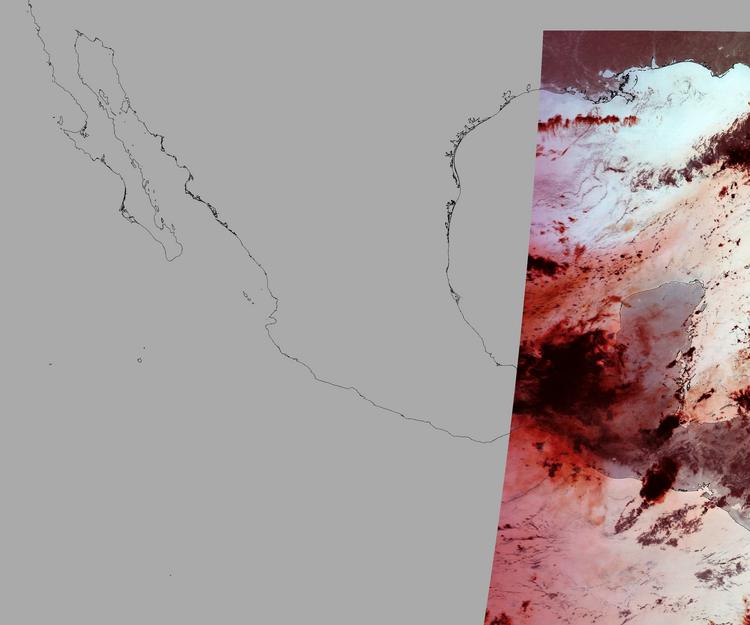 Nubosidad sobre el terreno:15% Nubosidad sobre México:31% Datos nulos en la escena:70% Datos nulos sobre México:86% |