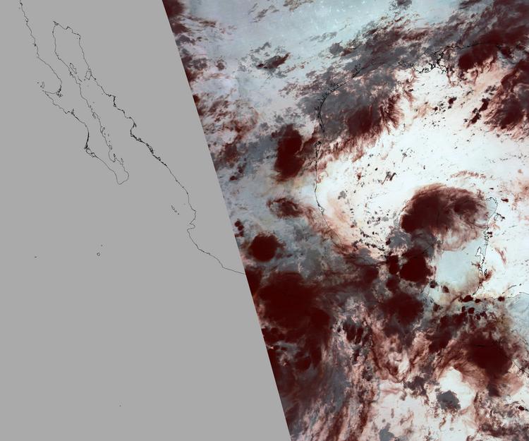 Nubosidad en el terreno:37% Nubosidad sobre México:46% Datos nulos en la escena:43% Datos nulos sobre México:37% |