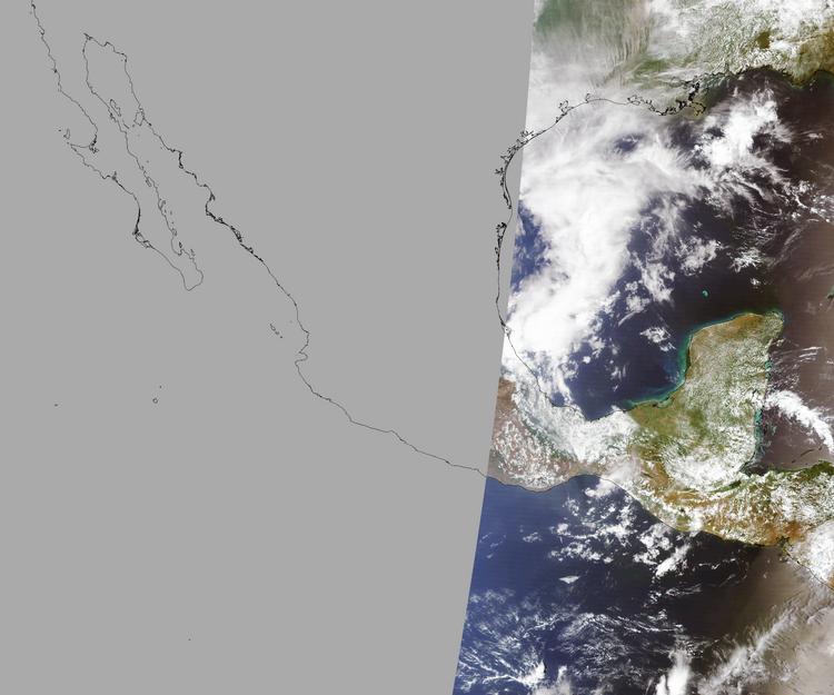 Nubosidad en el terreno:36% Nubosidad sobre México:25% Datos nulos en la escena:59% Datos nulos sobre México:79% |