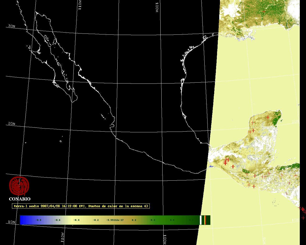Se considera como punto de calor al elemento espacial mínimo de la imagen (pixel) que reporta una temperatura elevada. Para las imágenes diurnas la temperatura mínima considera es de 42 C y para las imágenes nocturnas es de 25 C. |