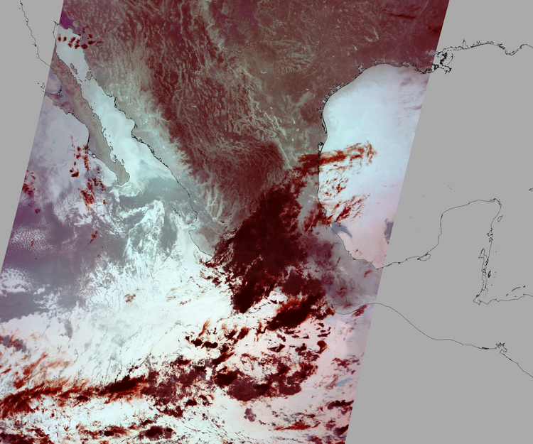Nubosidad sobre el terreno:8% Nubosidad sobre México:12% Datos nulos en la escena:29% Datos nulos sobre México:15% |