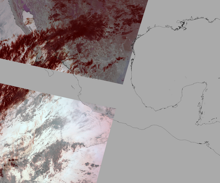 Nubosidad sobre el terreno:31% Nubosidad sobre México:27% Datos nulos en la escena:44% Datos nulos sobre México:28% |