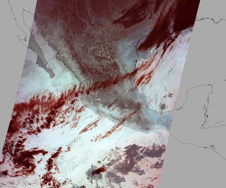 Nubosidad sobre el terreno:14% Nubosidad sobre México:2% Datos nulos en la escena:28% Datos nulos sobre México:15% |