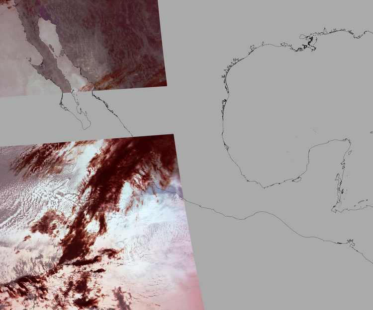 Nubosidad sobre el terreno:16% Nubosidad sobre México:18% Datos nulos en la escena:52% Datos nulos sobre México:48% |