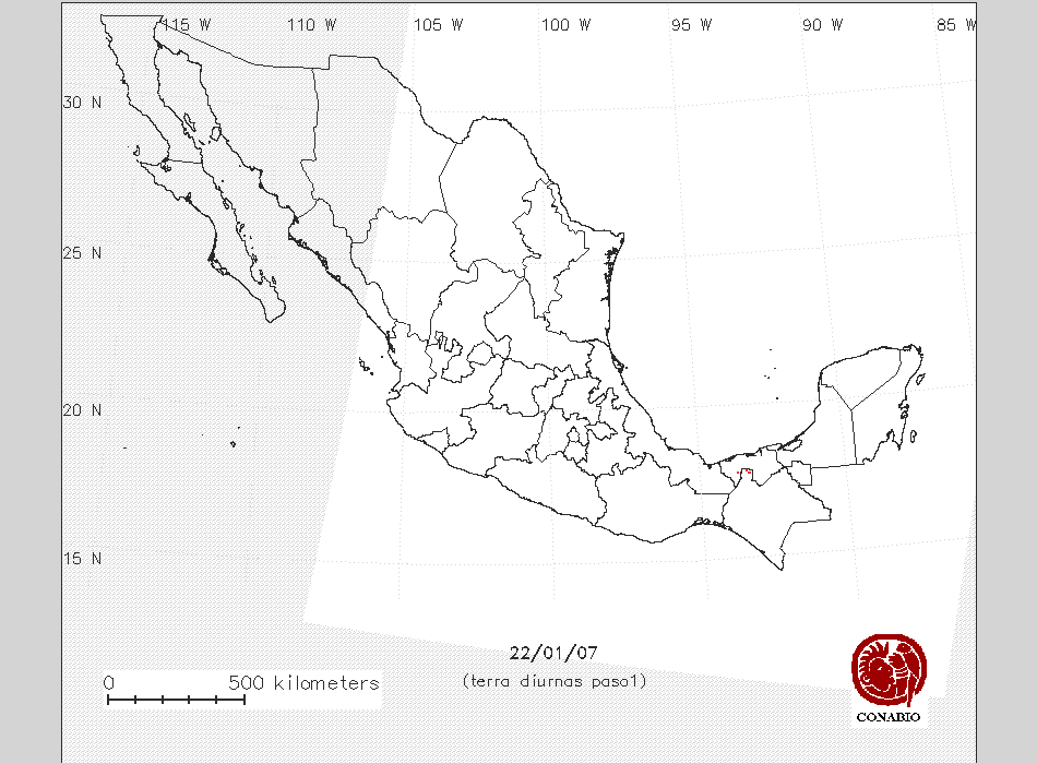 Se considera como punto de calor al elemento espacial mínimo de la imagen (pixel) que reporta una temperatura elevada. Para las imágenes diurnas la temperatura mínima considera es de 42 C y para las imágenes nocturnas es de 25 C. |