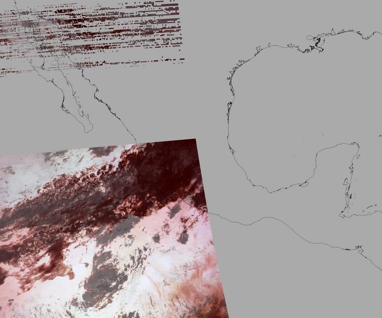 Nubosidad sobre el terreno:16% Nubosidad sobre México:19% Datos nulos en la escena:47% Datos nulos sobre México:37% |