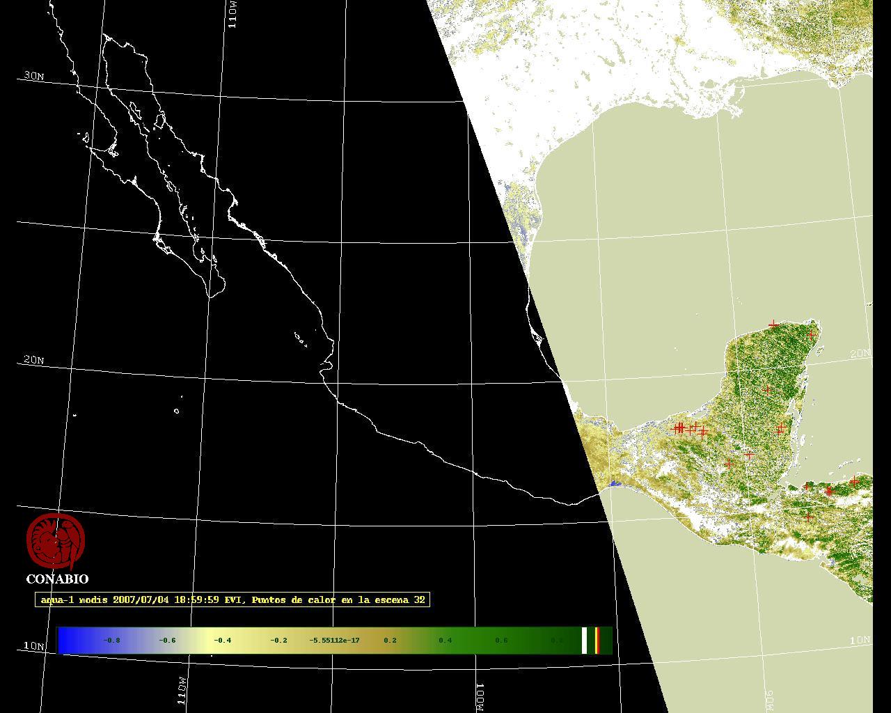 Se considera como punto de calor al elemento espacial mínimo de la imagen (pixel) que reporta una temperatura elevada. Para las imágenes diurnas la temperatura mínima considera es de 42 C y para las imágenes nocturnas es de 25 C. |