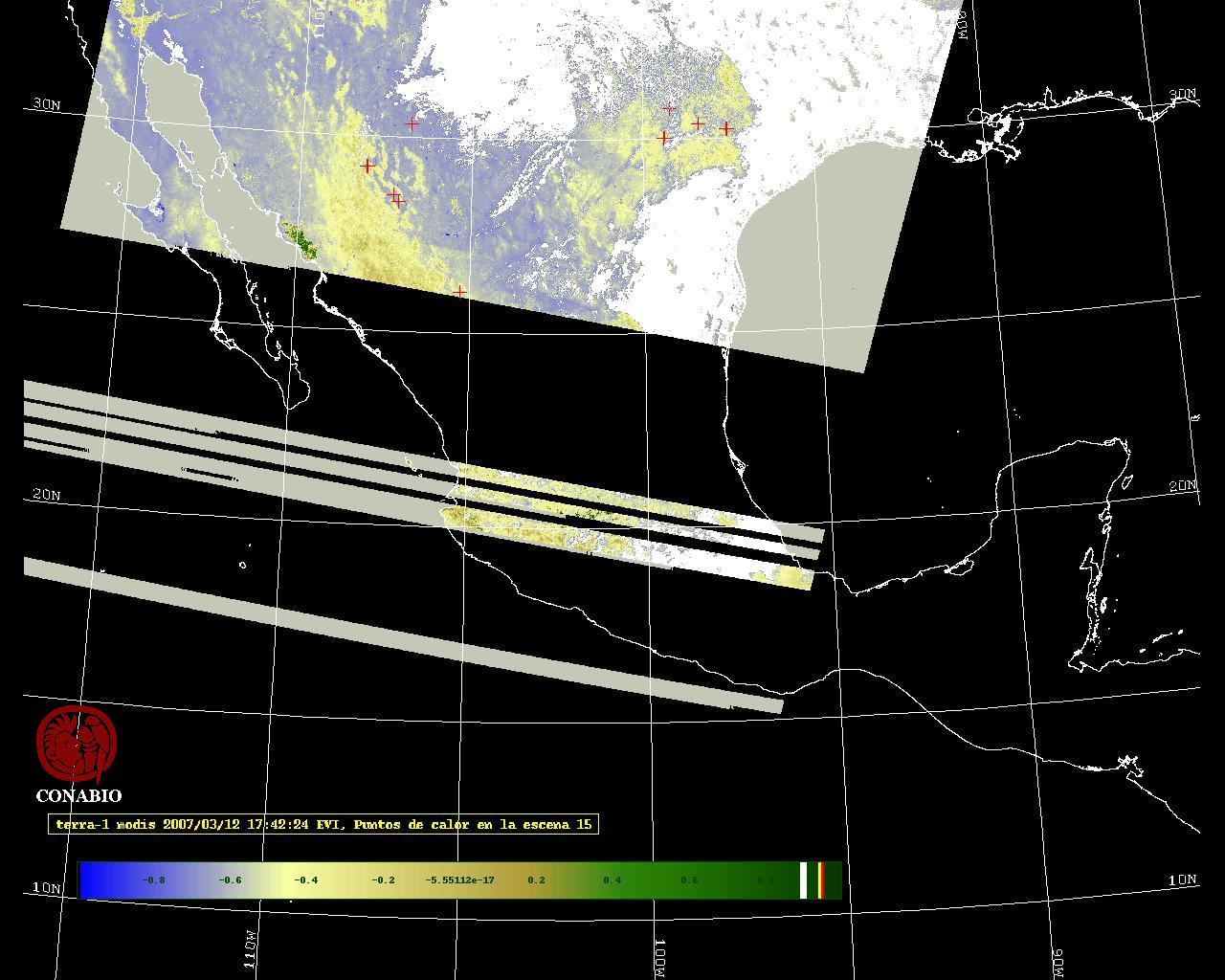 Nubosidad en el terreno:27% Nubosidad sobre México:8% Datos nulos en la escena:42% Datos nulos sobre México:15% |