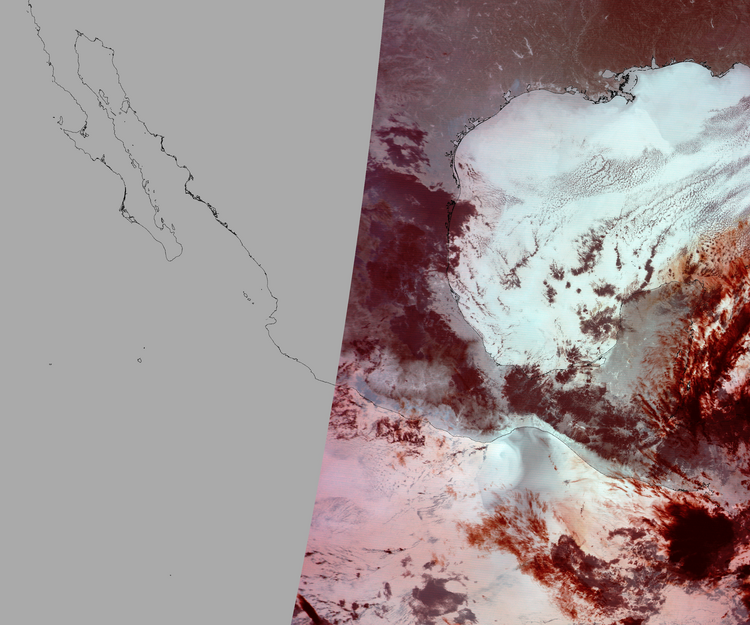 Nubosidad en el terreno:1% Nubosidad sobre México:0% Datos nulos en la escena:45% Datos nulos sobre México:53% |