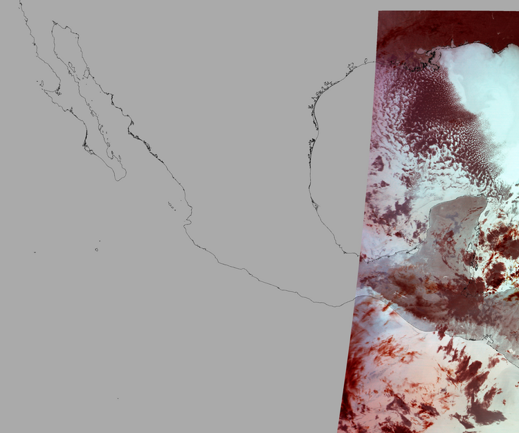 Nubosidad en el terreno:1% Nubosidad sobre México:0% Datos nulos en la escena:70% Datos nulos sobre México:86% |