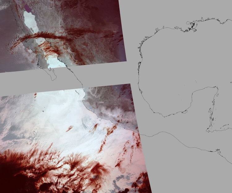 Nubosidad sobre el terreno:5% Nubosidad sobre México:4% Datos nulos en la escena:42% Datos nulos sobre México:26% |