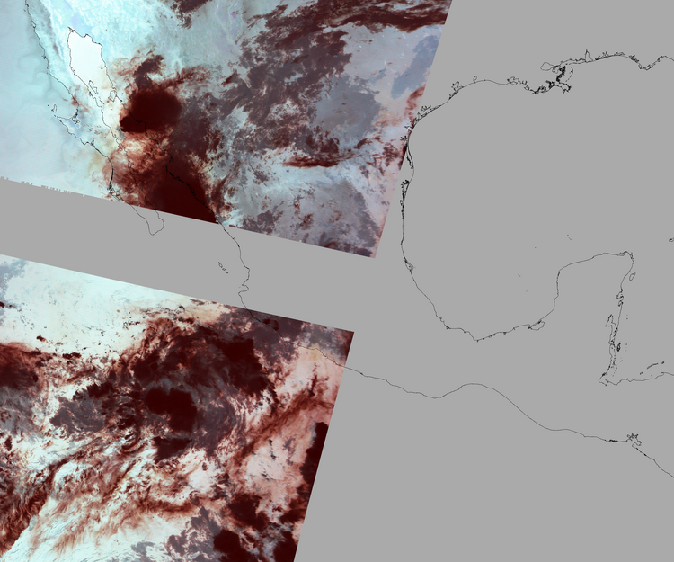 Nubosidad sobre el terreno:20% Nubosidad sobre México:19% Datos nulos en la escena:45% Datos nulos sobre México:29% |