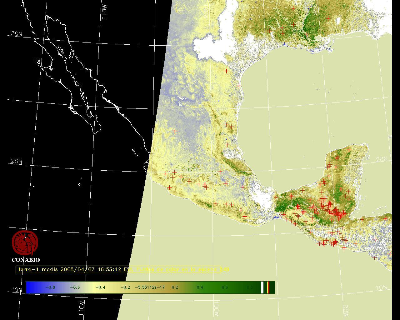Se considera como punto de calor al elemento espacial mínimo de la imagen (pixel) que reporta una temperatura elevada. Para las imágenes diurnas la temperatura mínima considera es de 42 C y para las imágenes nocturnas es de 25 C. |