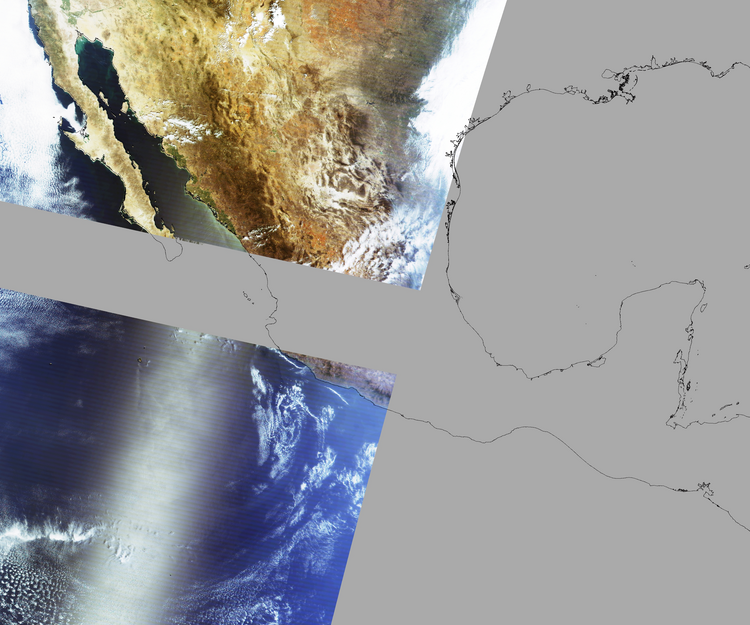 Nubosidad en el terreno:8% Nubosidad sobre México:3% Datos nulos en la escena:44% Datos nulos sobre México:28% |