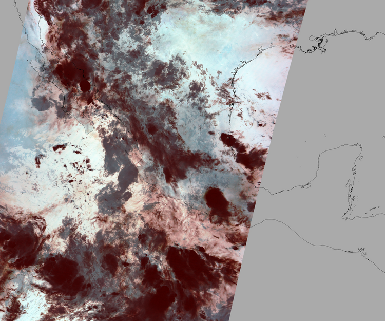 Nubosidad sobre el terreno:39% Nubosidad sobre México:46% Datos nulos en la escena:32% Datos nulos sobre México:15% |