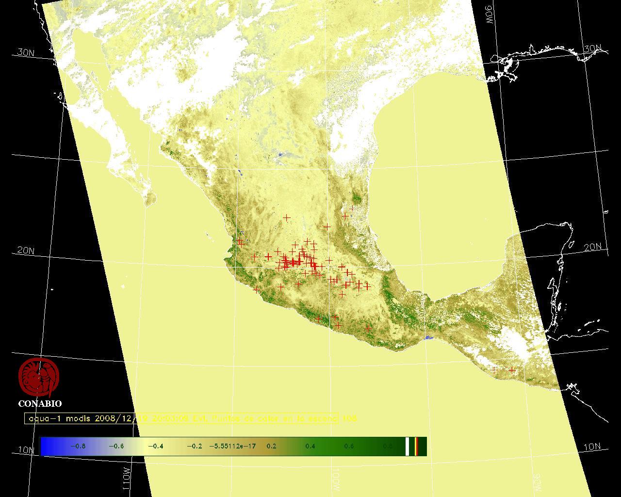 Se considera como punto de calor al elemento espacial mínimo de la imagen (pixel) que reporta una temperatura elevada. Para las imágenes diurnas la temperatura mínima considera es de 42 C y para las imágenes nocturnas es de 25 C. |