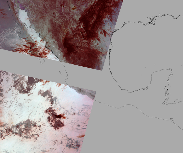 Nubosidad sobre el terreno:19% Nubosidad sobre México:15% Datos nulos en la escena:44% Datos nulos sobre México:28% |