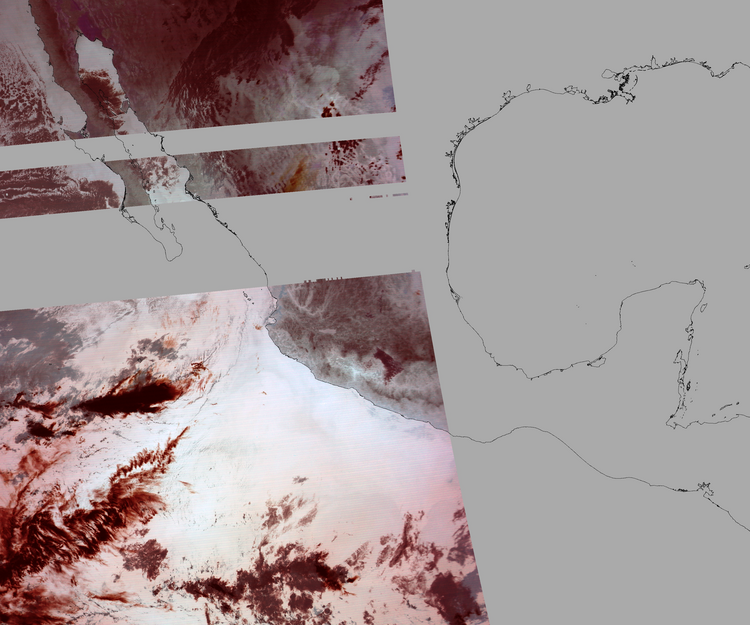 Nubosidad sobre el terreno:7% Nubosidad sobre México:2% Datos nulos en la escena:42% Datos nulos sobre México:26% |