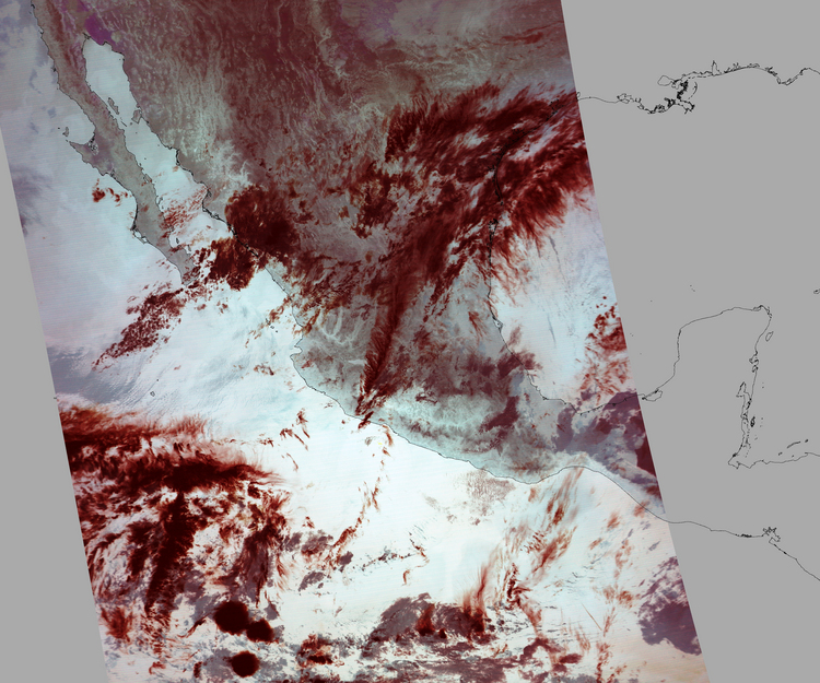 Nubosidad sobre el terreno:13% Nubosidad sobre México:14% Datos nulos en la escena:28% Datos nulos sobre México:8% |