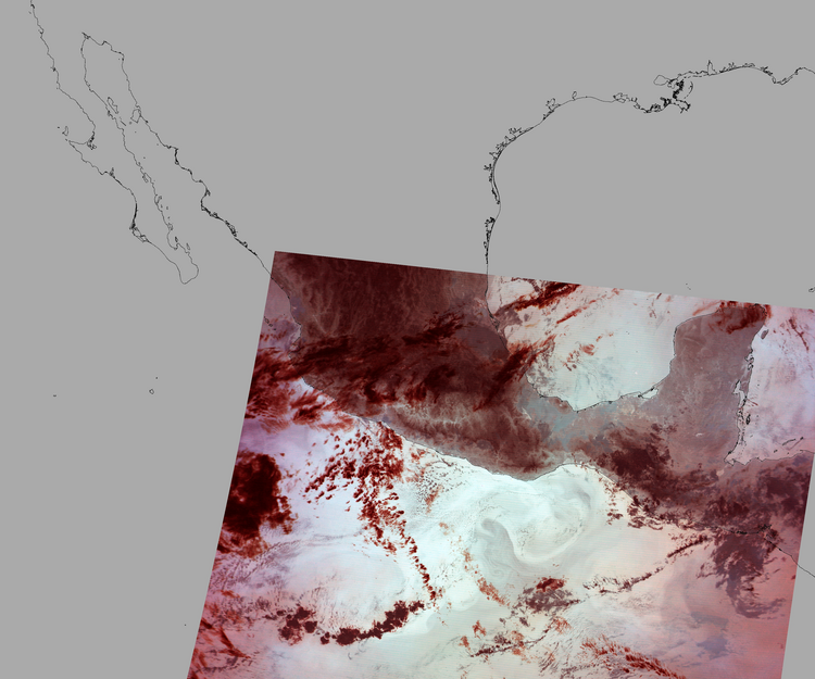 Nubosidad en el terreno:6% Nubosidad sobre México:7% Datos nulos en la escena:58% Datos nulos sobre México:51% |