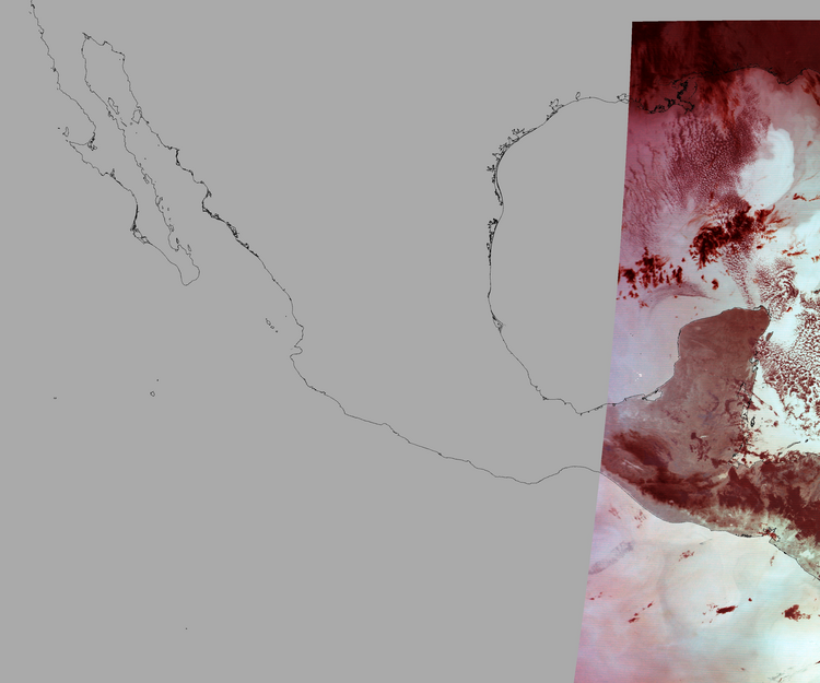 Nubosidad sobre el terreno:9% Nubosidad sobre México:0% Datos nulos en la escena:75% Datos nulos sobre México:88% |