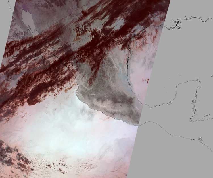 Nubosidad sobre el terreno:36% Nubosidad sobre México:25% Datos nulos en la escena:32% Datos nulos sobre México:15% |