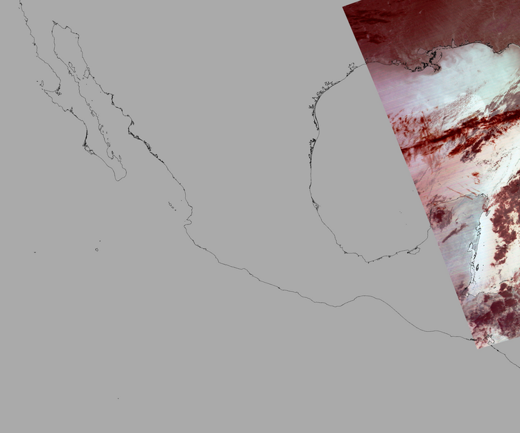 Nubosidad sobre el terreno:3% Nubosidad sobre México:0% Datos nulos en la escena:83% Datos nulos sobre México:94% |