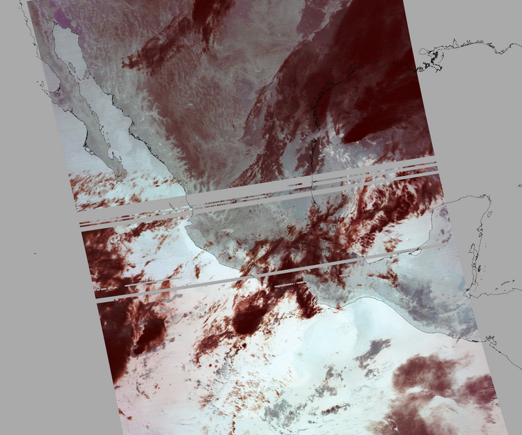 Nubosidad sobre el terreno:23% Nubosidad sobre México:13% Datos nulos en la escena:28% Datos nulos sobre México:4% |