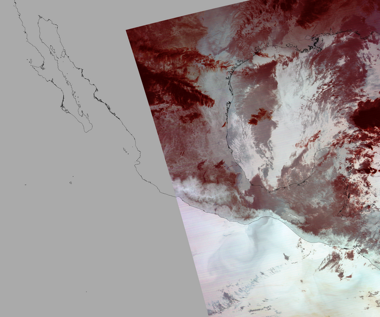 Nubosidad en el terreno:10% Nubosidad sobre México:14% Datos nulos en la escena:43% Datos nulos sobre México:37% |