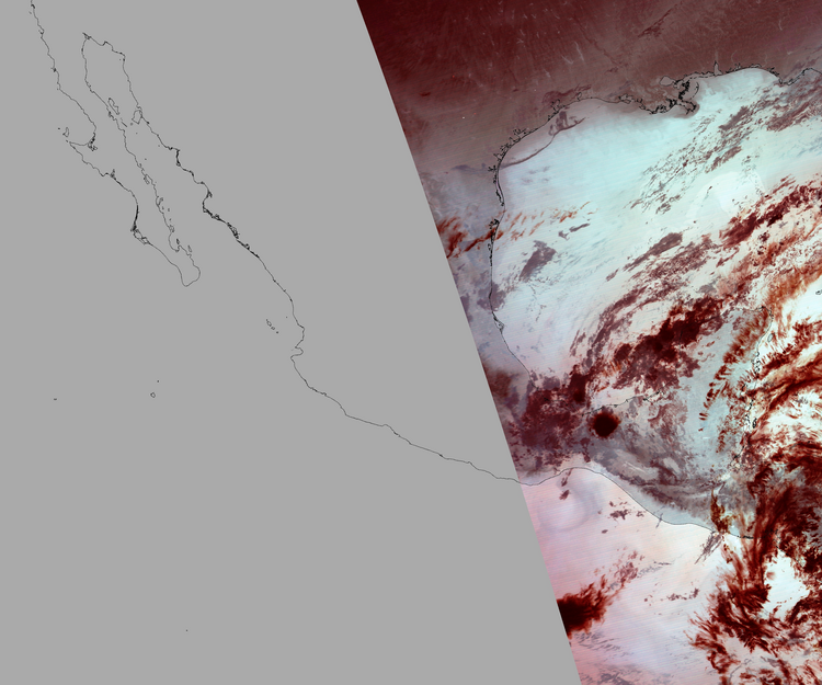 Nubosidad en el terreno:4% Nubosidad sobre México:3% Datos nulos en la escena:57% Datos nulos sobre México:73% |