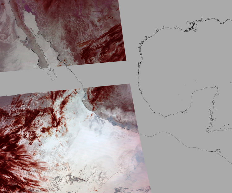 Nubosidad sobre el terreno:10% Nubosidad sobre México:11% Datos nulos en la escena:42% Datos nulos sobre México:26% |