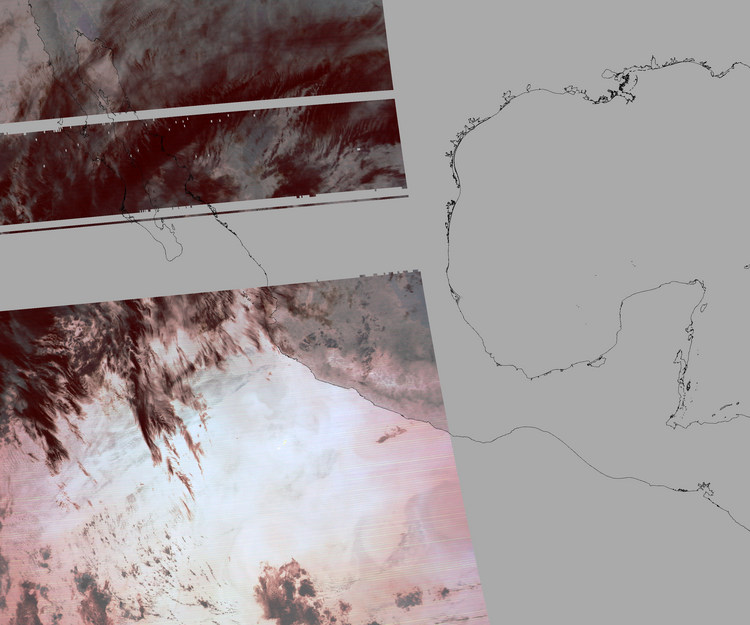 Nubosidad sobre el terreno:50% Nubosidad sobre México:40% Datos nulos en la escena:42% Datos nulos sobre México:26% |