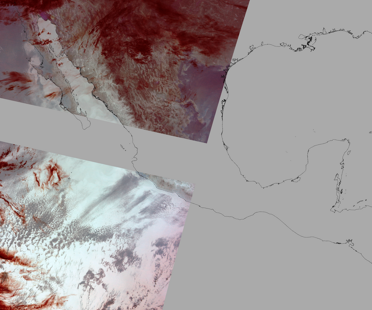 Nubosidad sobre el terreno:14% Nubosidad sobre México:6% Datos nulos en la escena:45% Datos nulos sobre México:29% |