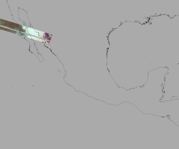 Nubosidad sobre el terreno:0% Nubosidad sobre México:0% Datos nulos en la escena:85% Datos nulos sobre México:93% |