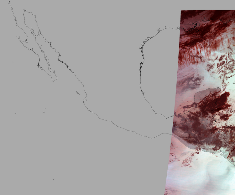 Nubosidad sobre el terreno:9% Nubosidad sobre México:0% Datos nulos en la escena:75% Datos nulos sobre México:88% |