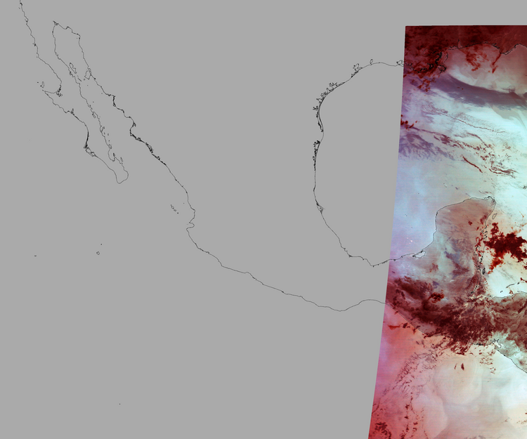 Nubosidad sobre el terreno:1% Nubosidad sobre México:0% Datos nulos en la escena:75% Datos nulos sobre México:88% |