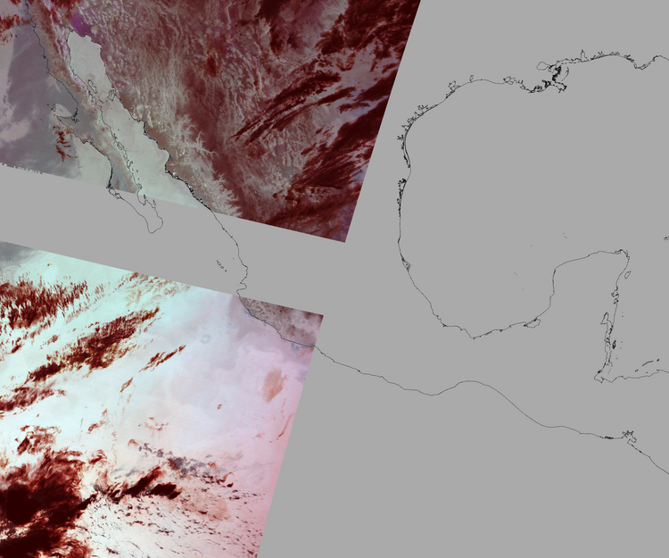 Nubosidad sobre el terreno:15% Nubosidad sobre México:9% Datos nulos en la escena:49% Datos nulos sobre México:37% |