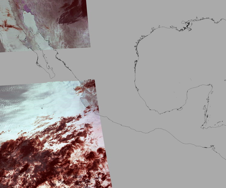 Nubosidad sobre el terreno:12% Nubosidad sobre México:6% Datos nulos en la escena:56% Datos nulos sobre México:58% |